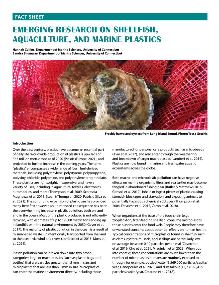 Connecticut Sea Grant Fact Sheet Explains Shellfish Aquaculture, Plastics Research